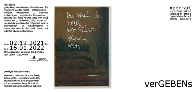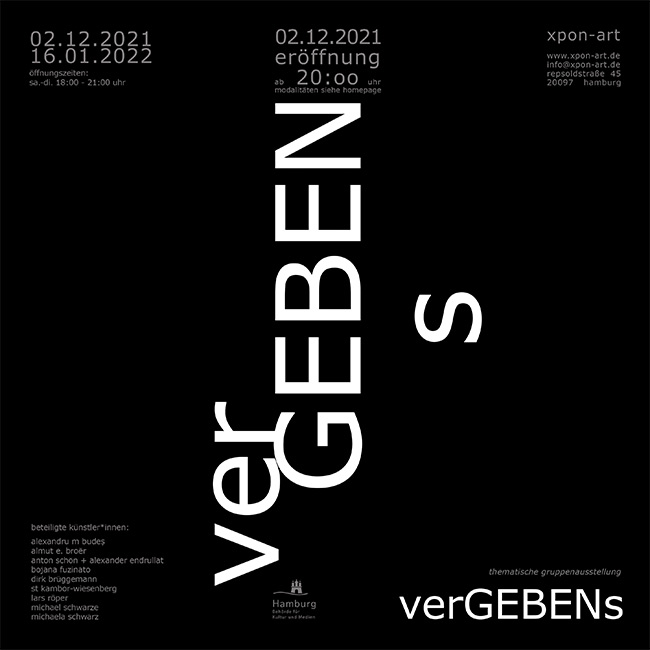 verGEBENs teilnehmende künstler*innen: alexandru m budes, almut e. broër, laufzeit: