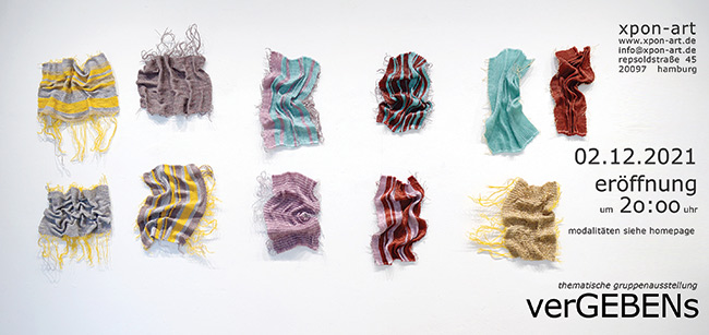 finissage: sonntag, 16.01. von 11-16 uhr ---------------------------------------------------------------------------------------------------------- corona-schutzmaßnahmen ::: - 2G - max 14 besucher*innen - wir müssen eure kontaktdaten aufnehmen - 1,5 m abstand zueinander - mund nase schutz muss getragen werden - es gibt keinen ausschank und auch kein wc ---------------------------------------------------------------------------------------------------------- weiteres auf https://www.facebook.com/xponart sowie auf instagram xponartgallery |