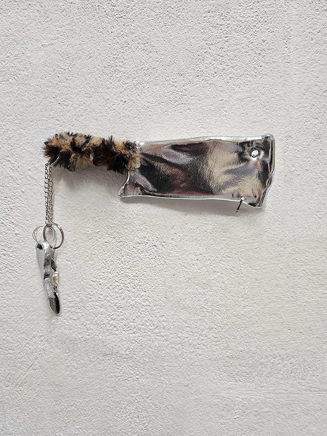 frerike nagels schreibt zu ihren objekten „begegne mir nicht auf dem nachhauseweg oder wechsel halt die straßenseite“ aus stoff und keramik „ich schließe die tür ab und drehe mich um. war da jemand oder ist das nur ein schatten? mein schlüsselbund und meine küchenmesser wirken als schnittstelle zwischen meinem zuhause und der öffentlichkeit.“